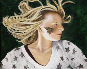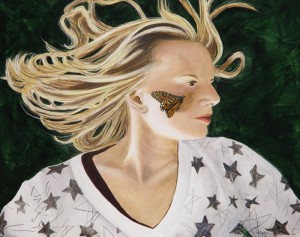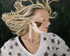 Once the butterfly was done I added the shadow on the cheek and then softened the back wing with a glaze to make it seem to be further back than the front wing.