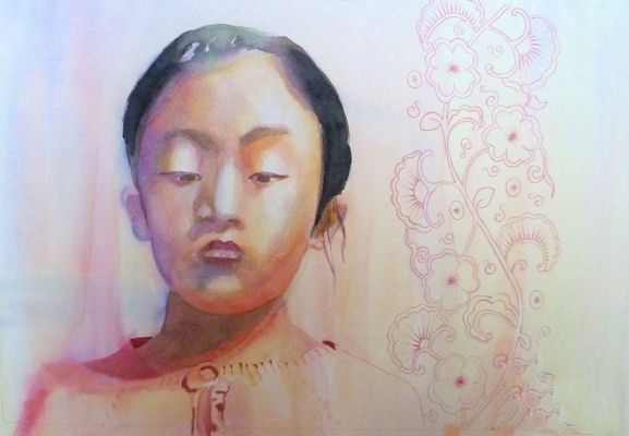 Thinking, Watercolor and Pencil Crayon step by step painting tutorial