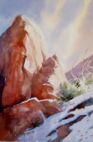 1. I shot this reference photo while hiking in Zion Canyon during January 2010. A fresh blanket of snow had recently fallen. The air was crisp and the contrast of white against the red sandstone rocks was exciting.