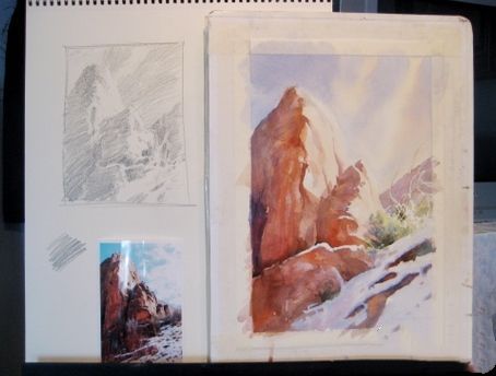 一个草图锡安国家公园之旅在2010年1月是刺激这个水彩画。我使用了参考一个水彩示范在我的一个圣佐治,UT为期两天的研讨会于2010年水彩画。感谢盖尔阿尔及尔拍摄的视频剪辑在类。