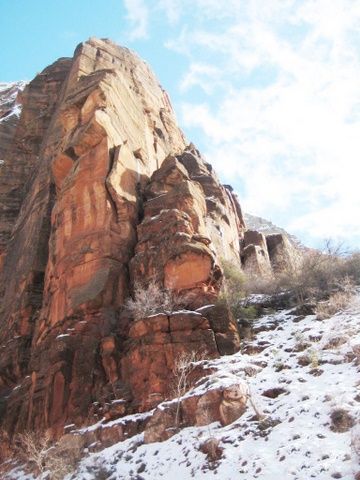 1。我拍这照片虽然徒步旅行在锡安参考峡谷在2010年1月。一个新鲜的银装素裹的最近下跌。空气清爽和对比的白色与红色砂岩岩石是令人兴奋的。