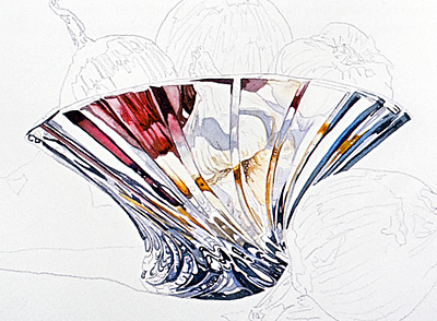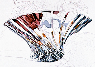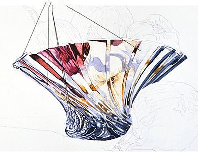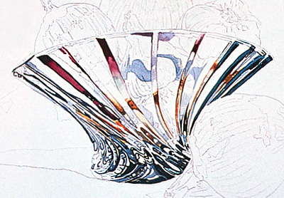 花瓶的左边有一个大量的线条,看起来好像他们融合漩涡。绘画这一领域时,留下一个小的白色的纸给他们所需要的线的分离。