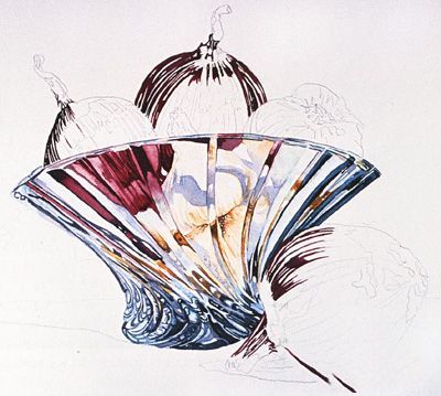 6画坡口之间的洋葱预混料的三个值永久茜素红和一丝Phthalo绿松石准备接下来的几个步骤。失真并不突出在这些地方,但它依然存在。你会继续工作在洋葱形状。