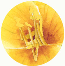 2)采取新的藤黄、油漆线每个雄蕊的一边,然后用干净的湿刷,运行它轻轻一边缘弯曲向轻软边缘一侧的雄蕊。允许干之前工作在接下来的雄蕊。继续这个过程,直到你将每个雄蕊从一个另一个一边暗然后另一个。记得要符合黑暗或光明国从一个雄蕊。例如看到幻觉。