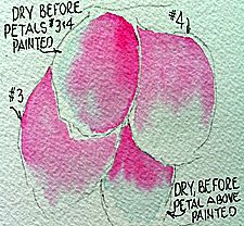 潮湿的花瓣,但一定要留一些边缘的干燥,研究图像,你会看到一些白色的纸。你不想要任何油漆。