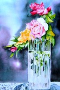 现在“下降”的颜色,在这种情况下永久的玫瑰,在潮湿的纸。允许油漆流的花瓣,如果显示的图像的边缘不抑制色素不会进入。