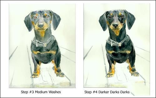 年代tep 3 -介质清洗:继续应用中值在整个绘画耐洗。油漆时,记得要把白色和浅单独洗。你会发现这幅画开始有对比和感觉的“深度”。