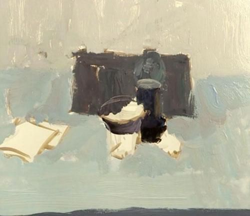 下面我们从最重的物体开始铺色,这样可以帮助我们把握画面中的大色调,有所比较,避免画面画到最后太过于灰了。