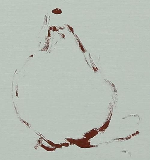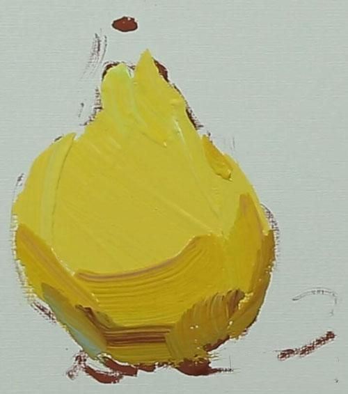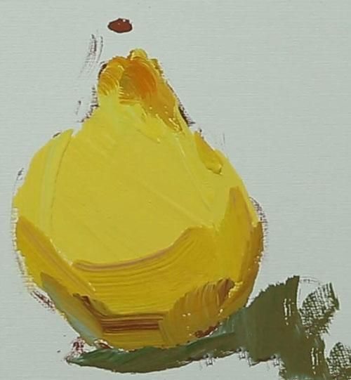 起形结束后开始铺大的色彩关系,先把梨子里面画好,然后用侧峰收形。