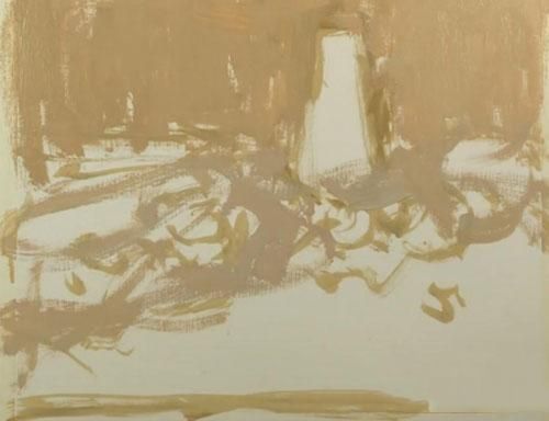 衬布画的时候先画灰面,把它涂满,亮部要先空出来,先画灰面。笔触甩开一点,注意它的方向性大小长短的变化。