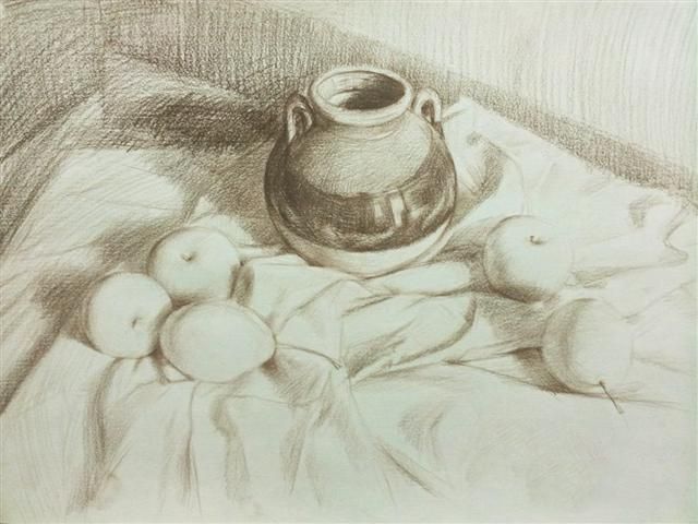 照片描述:根据物体与物体之间,环境与物体之间的颜色影响映射和冷暖变化。由主而次逐一着色。注意颜色的过度和轻重。时刻保持虚实主次的关系,素描关系和色调的统一。