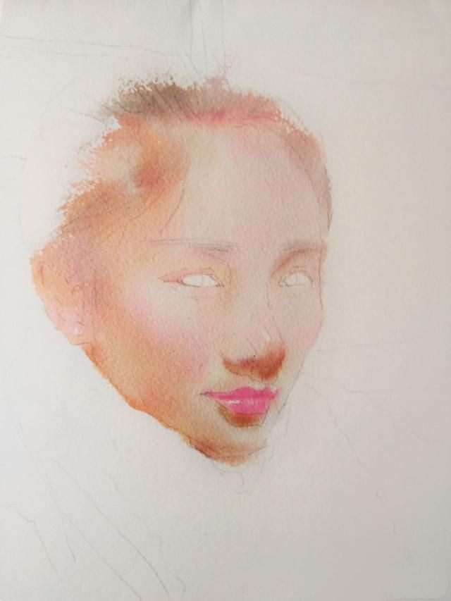 画出眼睛,眉毛等具体五官。注意整个画面冷暖变化以及虚实关系。