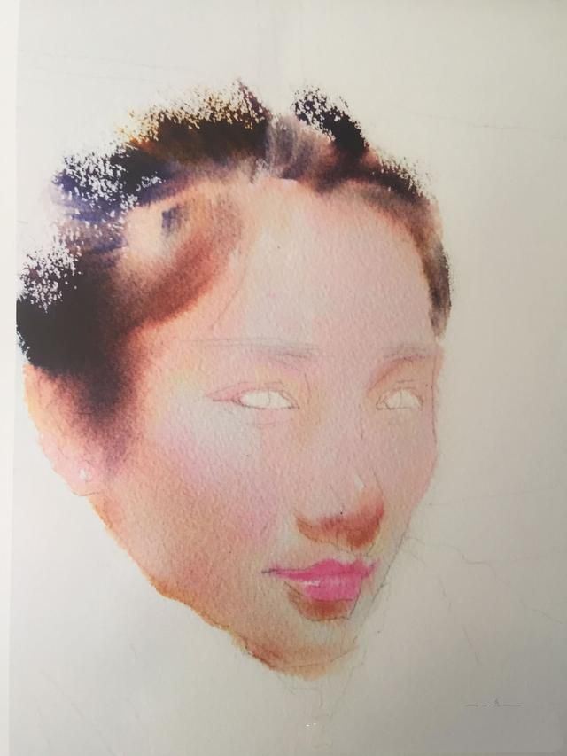 画出头发,注意头发与脸部接触位置要虚画,边缘线不要过实,头发刻画要干湿结合表现出头发的厚实感觉。