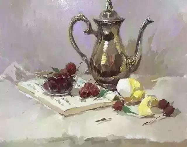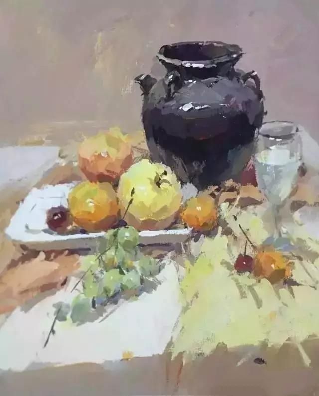 在表现深色陶键时应以深色,暗色为主调。例如,在画一个深黑色陶罐时,色调可以普蓝和深红为主,以湖蓝、紫色、裙石、淡绿为辅。在质感表现方面,与绘画中物体质惑的表现有羡的直接要素有色彩的纯度、环境色的强弱以及绘锤钠用笔等,用来写生的陶;罐可分为上釉的与不上釉的两种,上釉的陶罐在色彩变化上受环境色影响较大,而没有上釉的陶罐受环境色的影响较小,固有色表现得更明显,沙锅一般与没上釉的陶罐相似,都是粗陶制成的,反光较弱,固有色表现力强,所以在表现这一类物体时色彩纯度要降低,用色尽量厚重,用笔尽量果断。