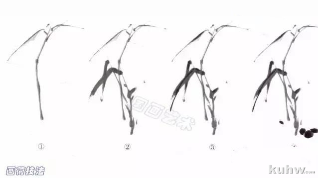 立叶的画法步骤:枯湿相间写立叶,腕间须具书写意味,墨分五色,不可不知。
