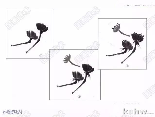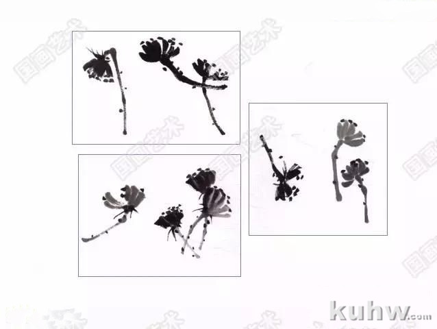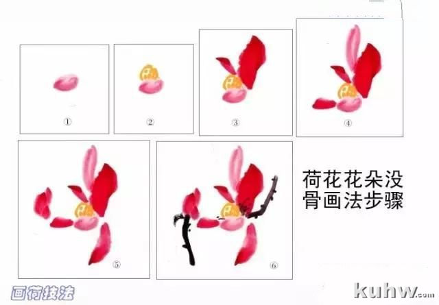 没骨画法:用没骨法画花朵,没色宜明净,笔底贵肯定。红花墨蕊,艳而不俗。