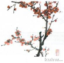 疏密:中国画理中有“密不通风,疏可走马”之法则。构图时应密处密,疏处疏,疏密有致才能节奏生动,平铺直叙,没有疏密变化则刻板平淡,观之乏味。画梅花,主要是处理好枝干、花朵、苔点等点、线、面的排列交叉关系。上图,前面主体枝干浓而密,后面辅枝淡而疏。