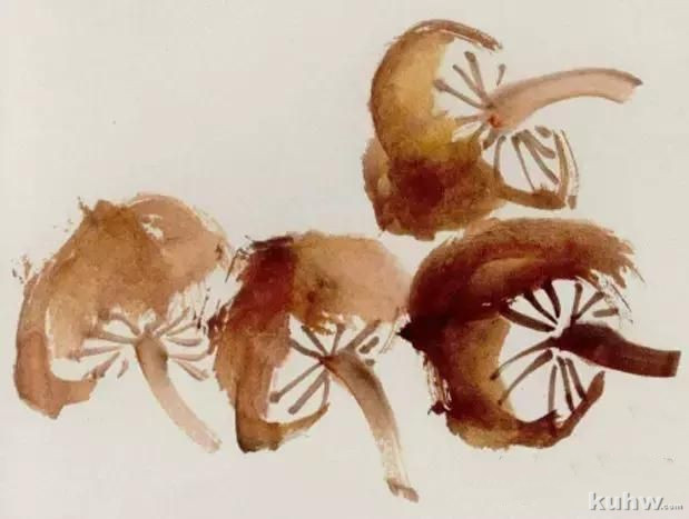 多个香菇在一起画时,要注意大小、方向、聚散的造型变化。