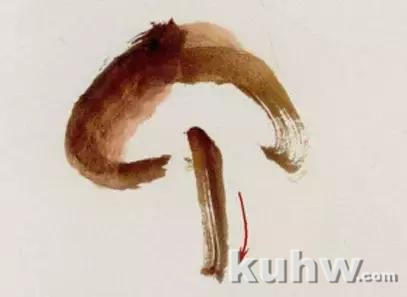 步骤三:于香菇底部中心处向下以中锋画出一笔,表现出香菇的形态。