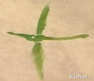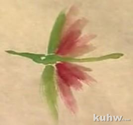 出两个眼睛,再勾一勾,肚皮下是淡黄的色,在用鲜绿染一下,