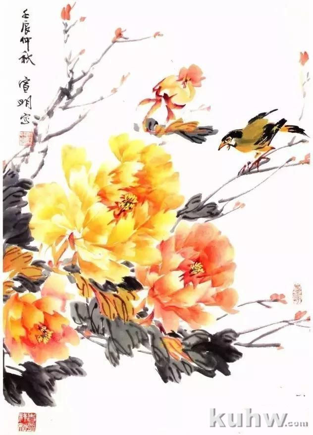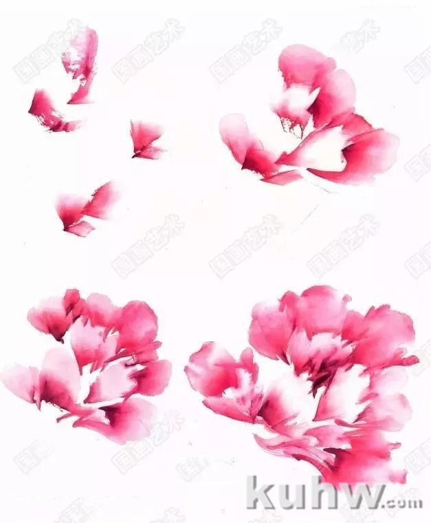 牡丹分单瓣和复瓣型,少则十余瓣,多则数十瓣,写生或创作时要学会三瓣定位法,即抓住显眼的和不同方位的三大瓣,定其位,然后逐渐画出其他的花瓣,做到有条而不紊。
