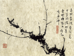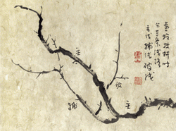 画梅花枝干应注意往复、轻重、曲直、刚柔变化,粗与细、曲与直要有对比。枝干和根部要有走势与姿态的变化。