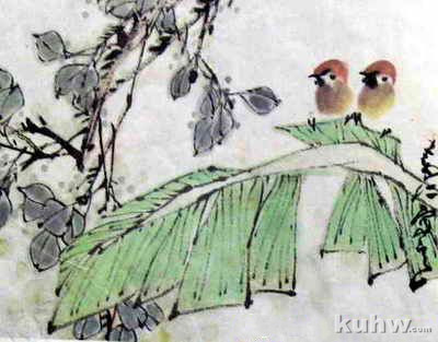 点画法芭蕉叶可用墨画,也可用色画。