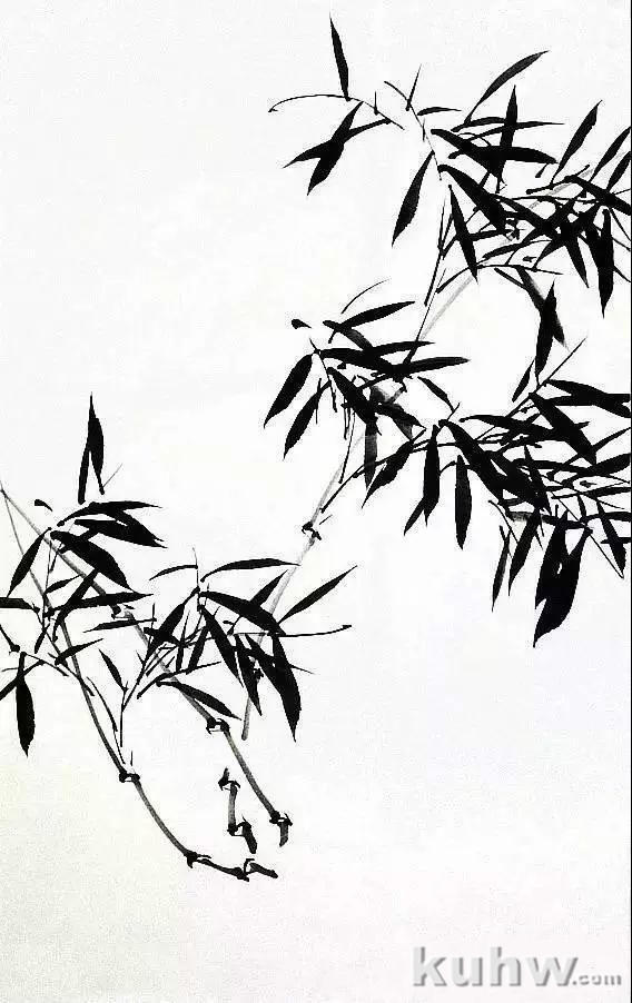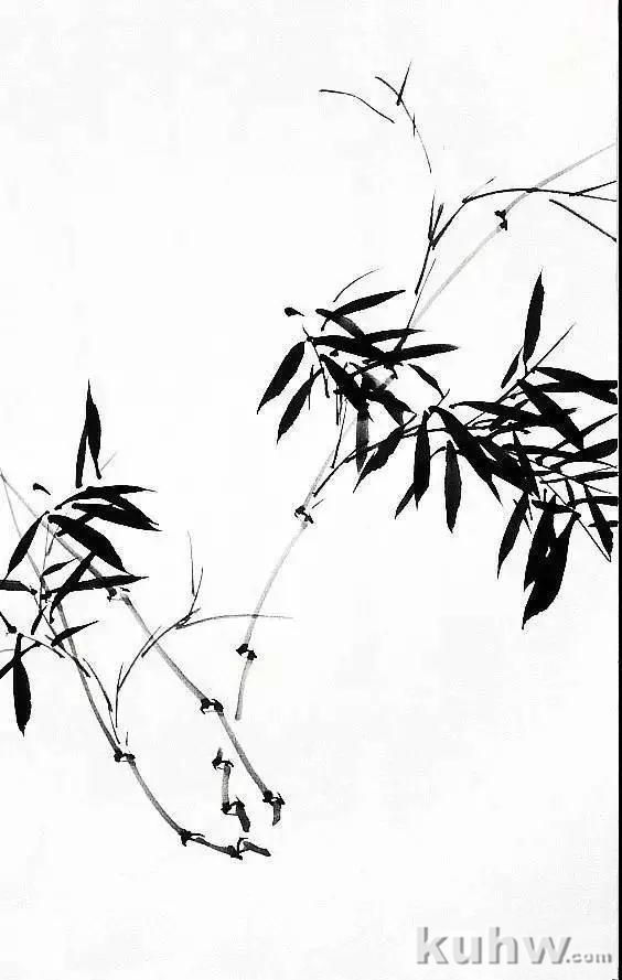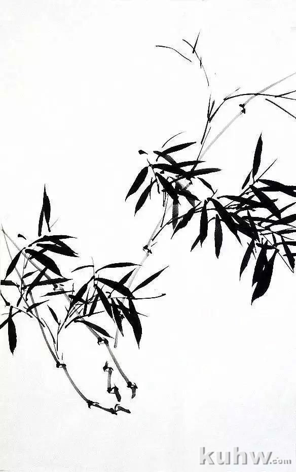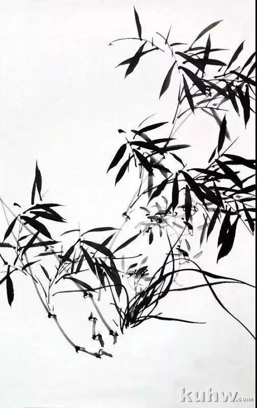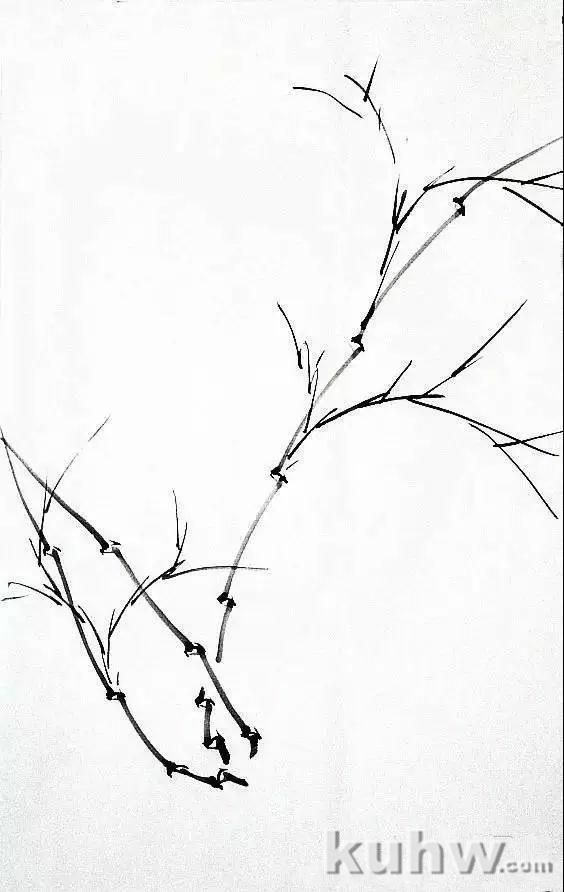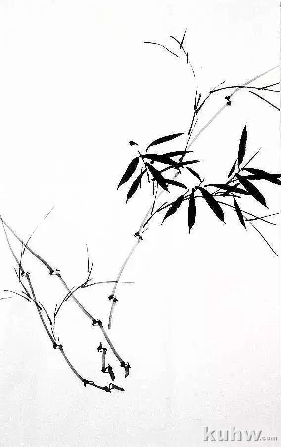 以兰竹笔蘸较淡墨色,用中锋写出竹竿,而后以草书笔法写竹枝。画时要注意枝、干的穿插关系,要求行笔劲健流畅。