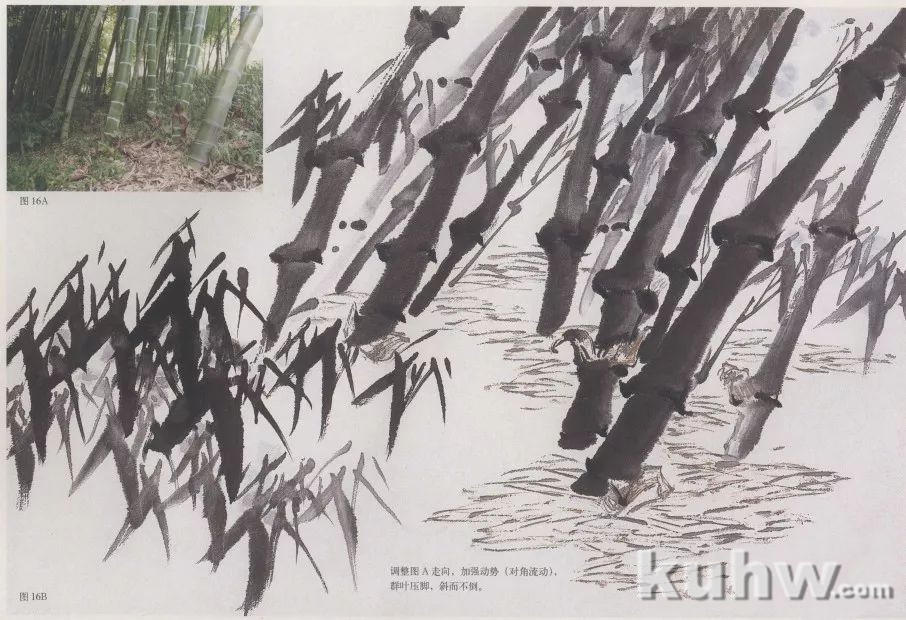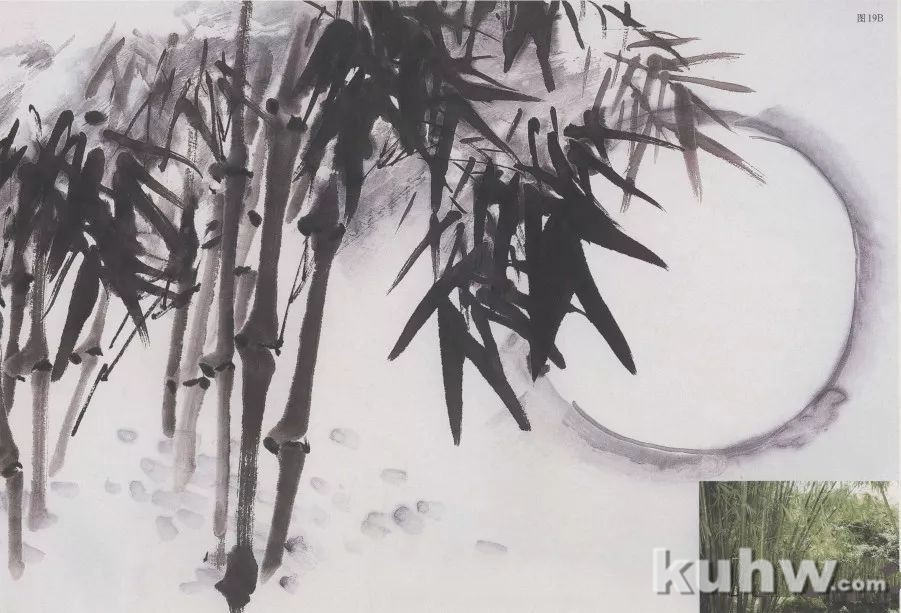 丛竹虽好,不成章法,取其一组,大胆取舍,迁想妙得,组成画面。