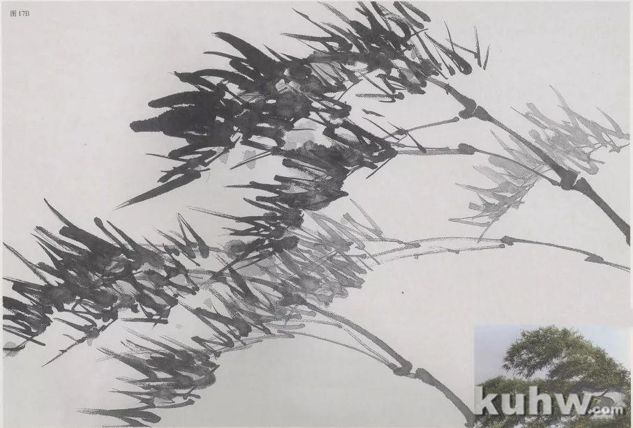 图A叶子太实,脉络不清,应删繁就简,突出龙骨,以题款辅助之。