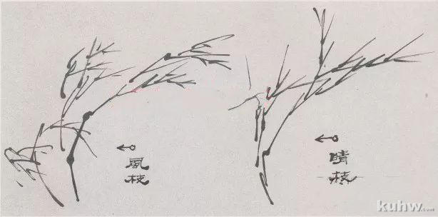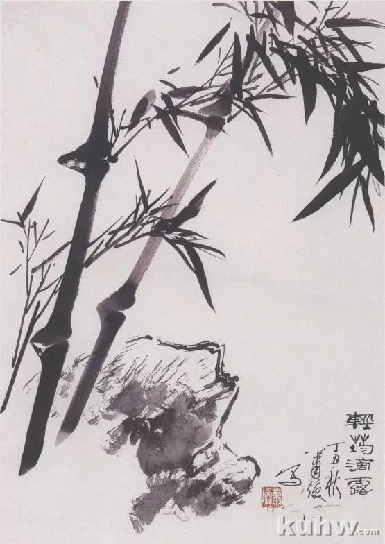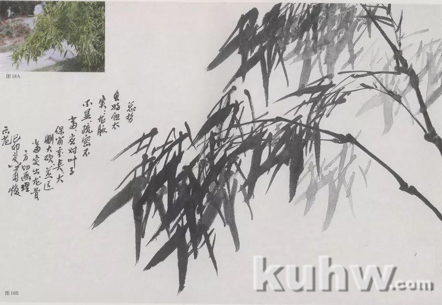 ②竹叶在空间里因透视关系,其形象宛若分、介、八、入、必、父等字的组合,画家把它作为一种符号,形成一种画竹程式,这个程式是画竹入门的捷径,应认真继承发扬。诀曰:人介相间,分个相参,八人必父,形象万千,群叶组合,主笔明显,斜依斜靠,不可并肩。