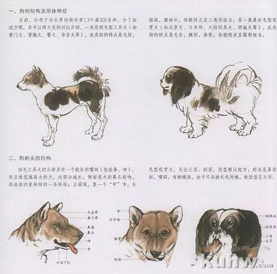 中国国画技法—狗的结构及体形特征: