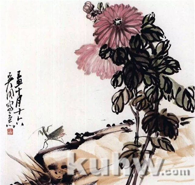 步骤三:画面干后加昆虫补空白之处,与花形成呼应之态。