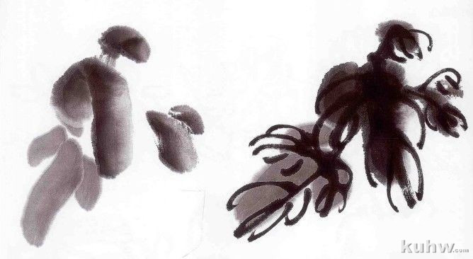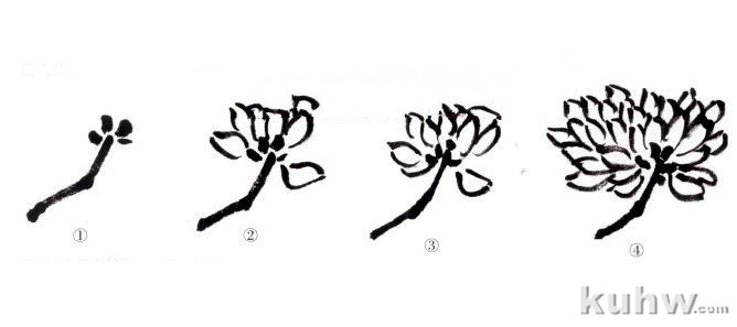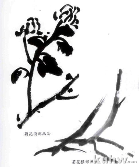 菊花枝干宜先中锋用笔写出主枝,再添加侧枝,注意用笔提、按、顿、挫、缓钯,在实践中予以变通。↓↓↓