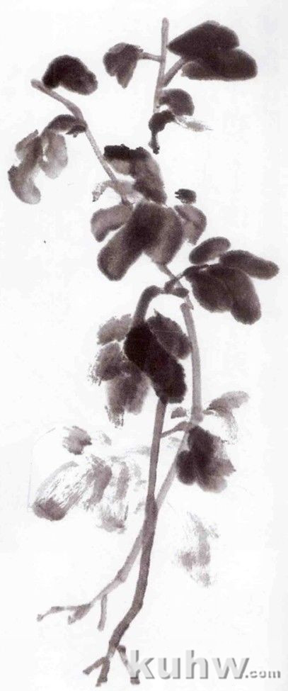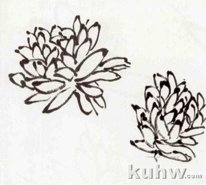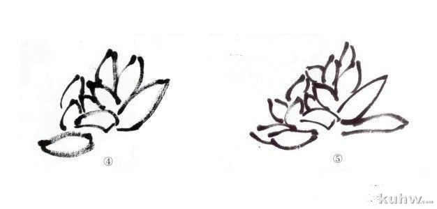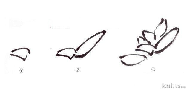 笔尖蘸浓墨,中锋两笔写单瓣,再双勾其他花瓣,以确定花朵的形态,用笔要灵动,宜有质感。↓↓↓