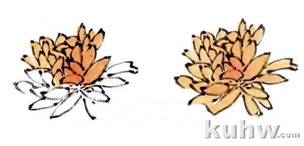 在基本完成的花朵轮廓上宜求变化,避免对称、呆板的置陈布势。↓↓↓