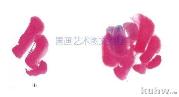 待底色略干未干时,蘸浓胭脂,中锋用笔勾勒花瓣,注意花瓣宜有变化,行笔须舒展畅达。↓↓↓