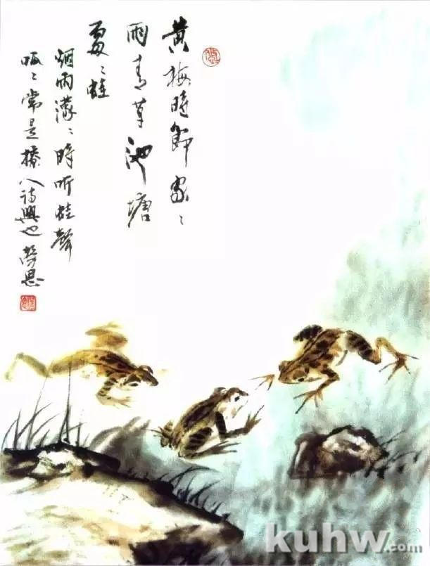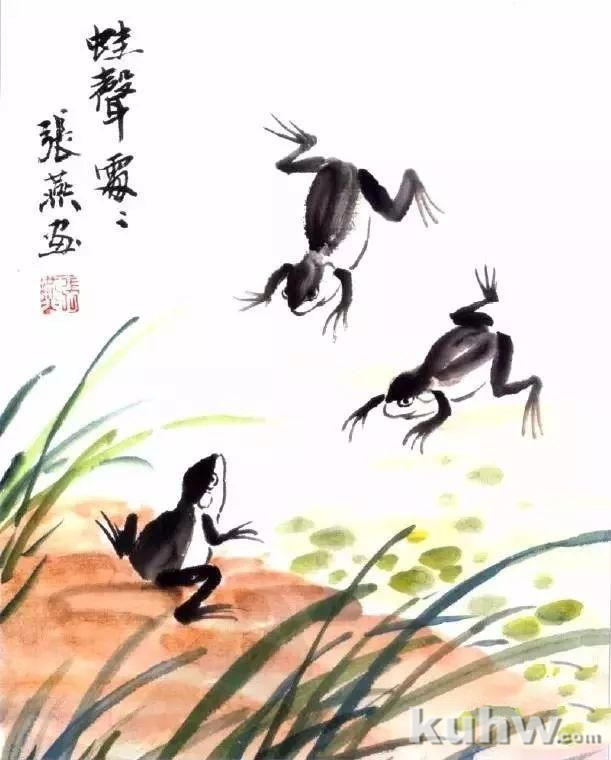 5.最后用浓墨点睛,并画出青蛙身上的斑纹。