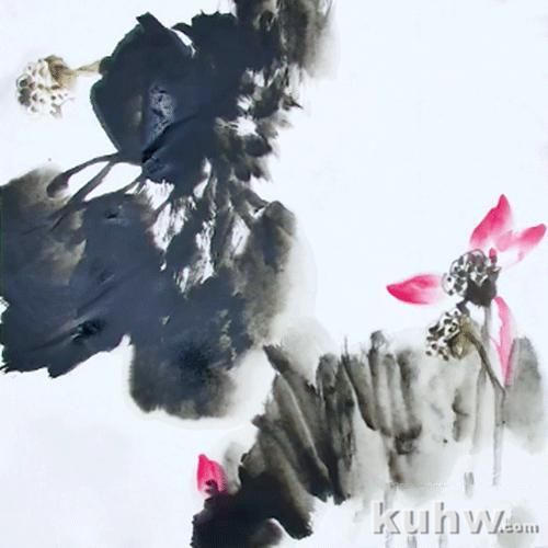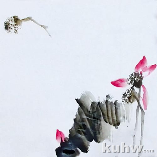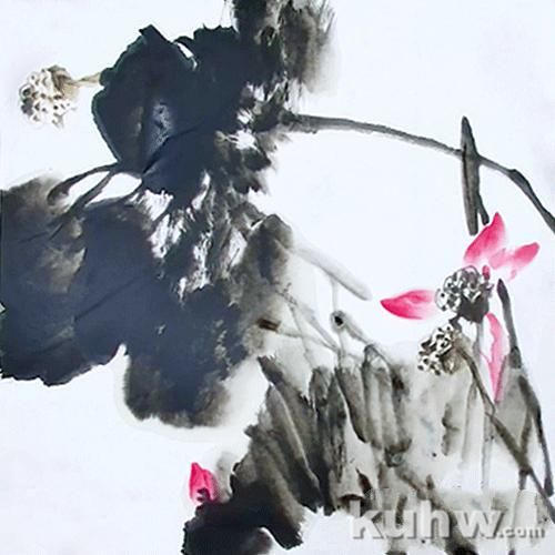荷花的笔墨组合和构图关系