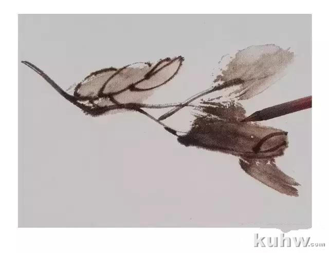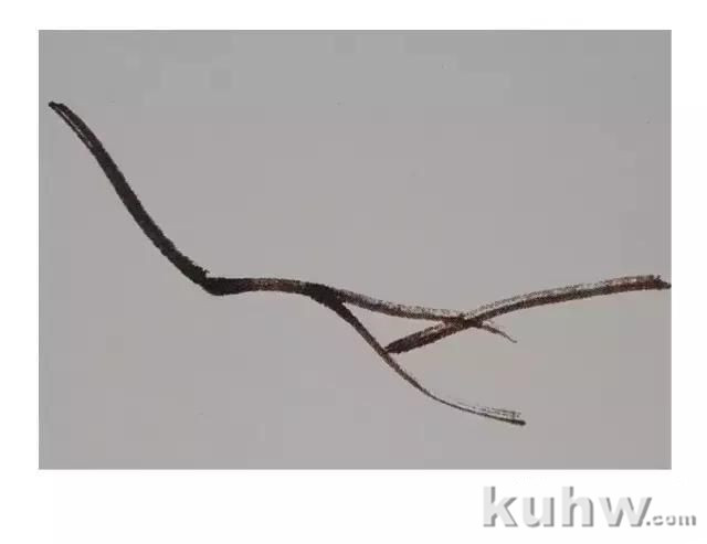 使用中号羊毫调和浓墨,中锋用笔勾画一条横枝。