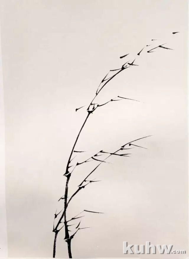 2、顺势画出后面枝干。风竹的竿要稍有点弯度以显其弹性,但不可过。