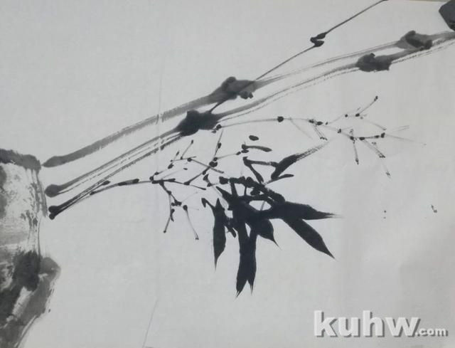 上面三幅图,画的是中间细竹间的淡叶缓缓而起。