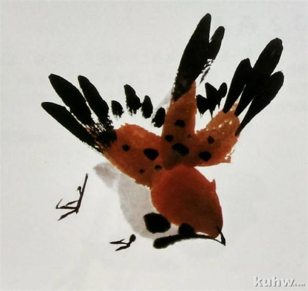 (6)蘸取浓墨,画嘴、眼、爪等,并完善细节。
