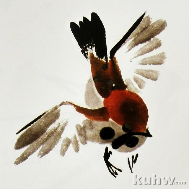 一只飞行中麻雀的画法步骤: