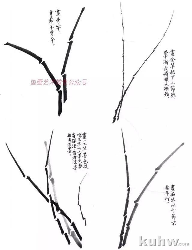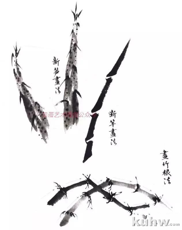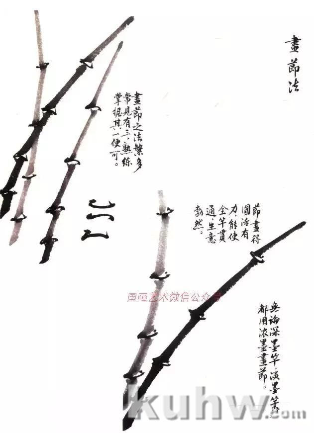 竹节画得圆活有力,能使全竿贯通,生意勃然。无论深墨竿、淡墨竿都用浓墨画节。↓↓↓