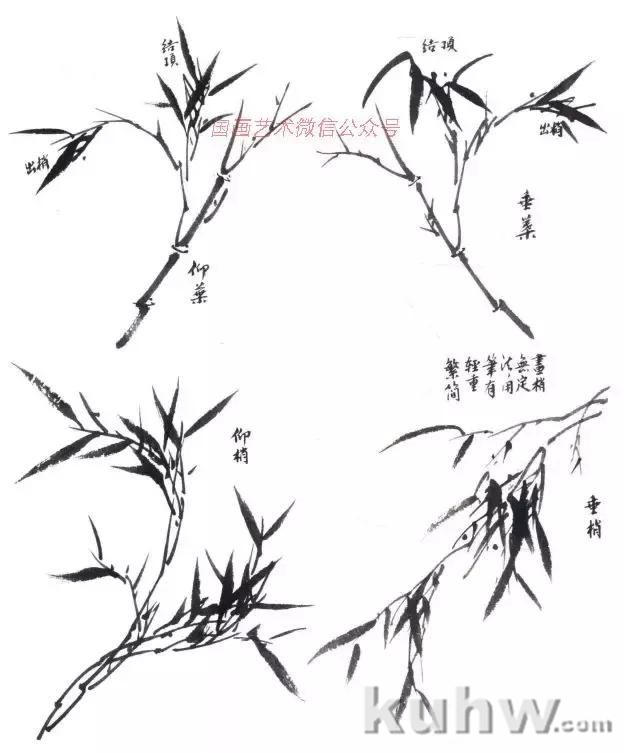 写一竿之枝叶,要阴阳向背、左右顾盼、上下相生。写数竿之枝叶,要有宾主、有掩映、有补缀、有衬贴、有照应、有参差、有烘托。↓↓↓