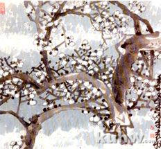 圈梅法是一种用线条表现梅花的方法,这种方法由来已久,到南宋时已出现了专门的圈梅画谱——《梅花喜神谱》。画谱按梅花不同的生长周期,从“蓓蕾”、“小蕊”、“大蕊”、“欲开”、“大开”到“烂漫”、“欲谢”、“就实”等八个阶段,画出了不同姿势动态的梅花一百幅,圈梅法发展到现在已是一种非常基本技巧。圈梅最重要的就是线条的组织,因此在圈梅时不仅要按花卉的生长结构描绘,还要从线条的疏密虚实、穿插布白等方面考虑,这样才能发挥出中国画线条特有的魅力。