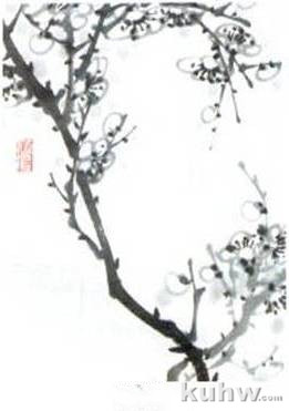 综上所述,既是一般花鸟画构图中创造形式美的重要法则,也是画梅花时应该掌握的规律。梅花构图和其他花卉大同小异,根据梅花以表现枝干为主,构图上可归纳为“长短、粗细、多少、纵横”八个字。梅花的一切构图形式,万变不离其宗,都发自这八个字。 构图力求形式优美,变化万千,时又求得统一,“变化统一”是构图的总要求。变化与统一是事物矛盾对立的两个方面。一幅画无“变”则板,“变”过则乱。也就是说,画画时在笔墨、形体、色彩等诸方面太统一,必然呆板、单调、无生机。必须造成表现手法上的各种“矛盾”,才能产生起伏、涤荡和节奏韵律等美的东西。梅花构图,也正是运用矛盾的对立统一法则,创造出各种各样的构图形式。 为使初学者易于掌握,现介绍几种主要的梅花构图方法,以供参考。