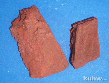赭石:赭石来源于赤铁矿,产于湖北大冶、河北宣化、辽宁鞍山等地。古代产于山西代县,称作代赭,化学成分主要为氧化铁,含有一定的粘土成分,色相因为产地的不同分为赭黄、赭红、棕红、棕褐等。