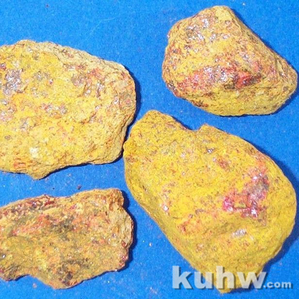 图片 2 石黄:石黄是雄黄矿的伴生物,含有粘土的成分,呈现中黄色。